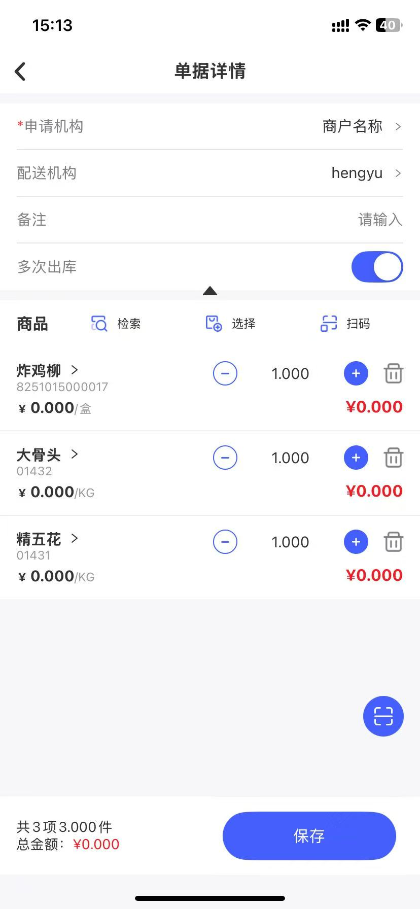 使用操作:门店通 -- 【应用】--【配送管理】--【调拨申请单】--【新增单据】--【多次出库】