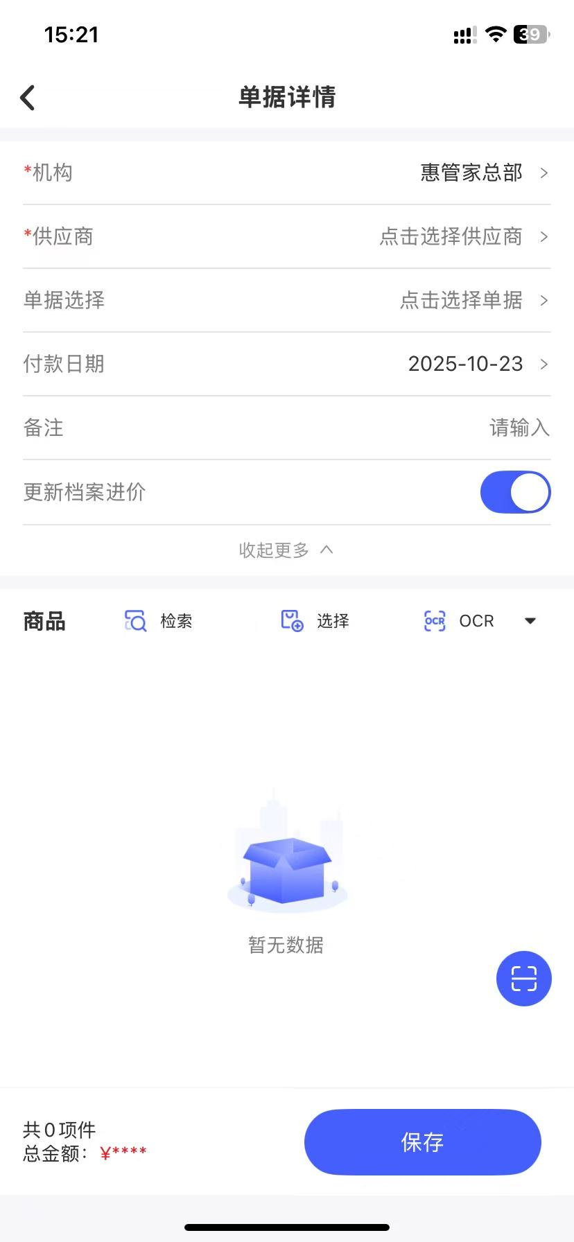 使用操作:门店通 -- 【应用】--【采购管理】--【采购订单】/【采购进货】--【新增单据】--【OCR】
