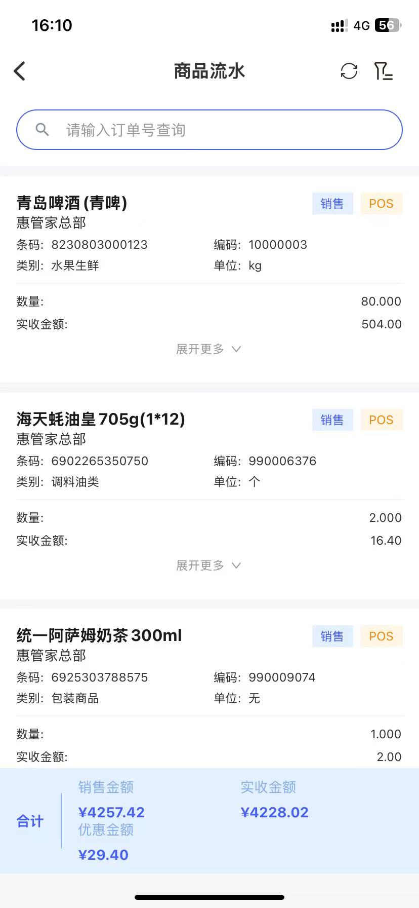 4、新增“ 商品流水查询报表”