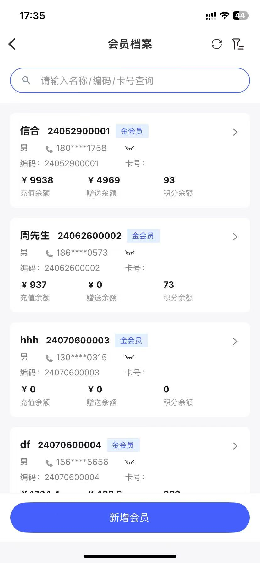 使用操作:门店通 -- 【应用】--【会员管理】--【会员档案】-- 手机号中间四位默认隐藏(可点击眼睛按钮打开)