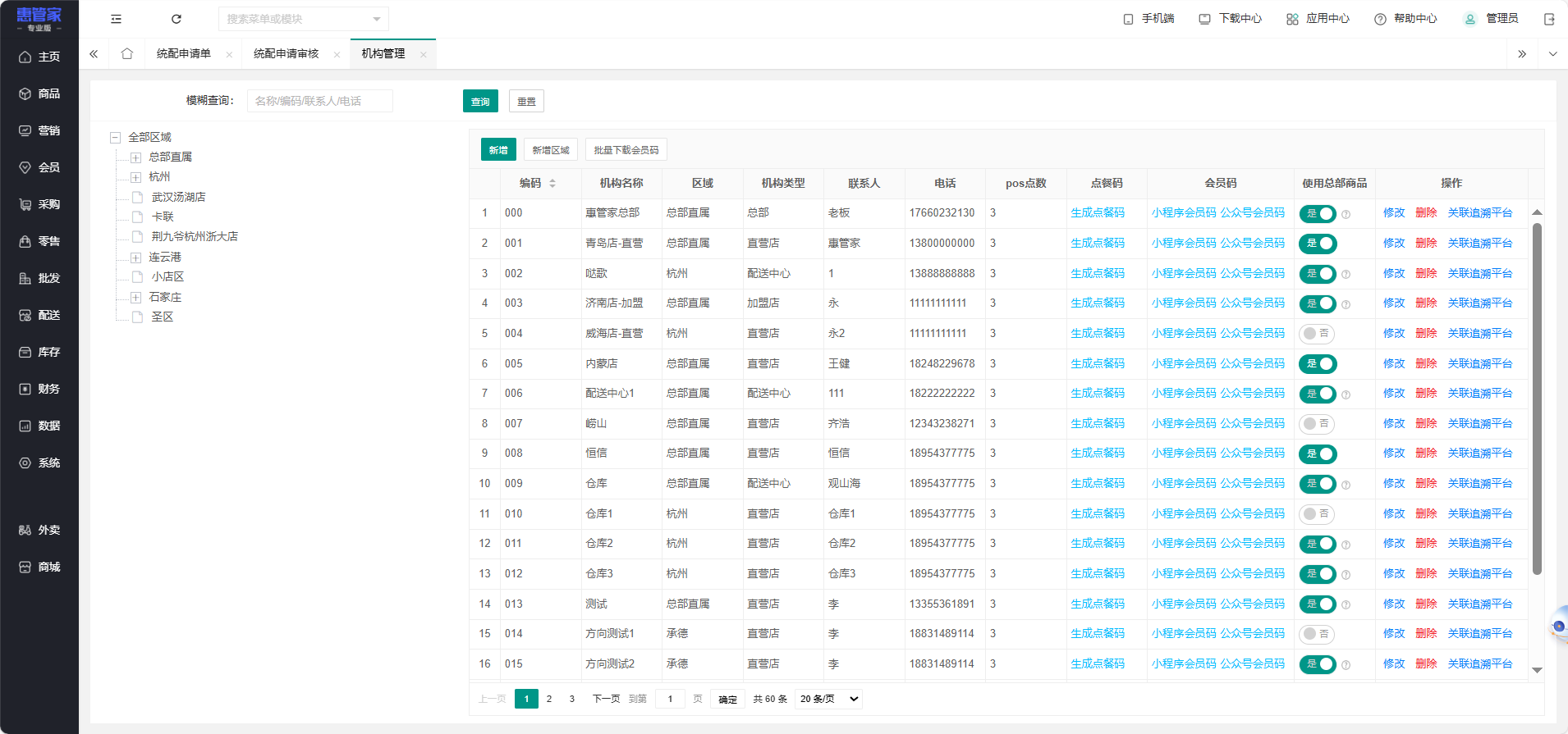 使用流程:后台 --【系统】--【机构管理】-- 左上角 --【输入手机号】