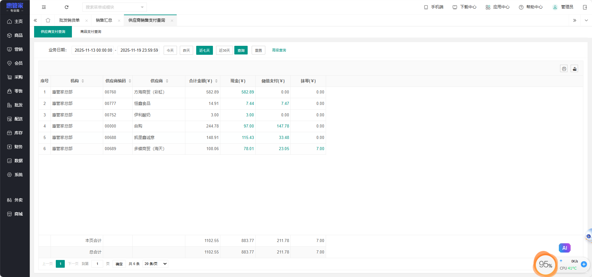 功能目的:联营供应商结算,需要扣除掉微信、支付宝等手续费