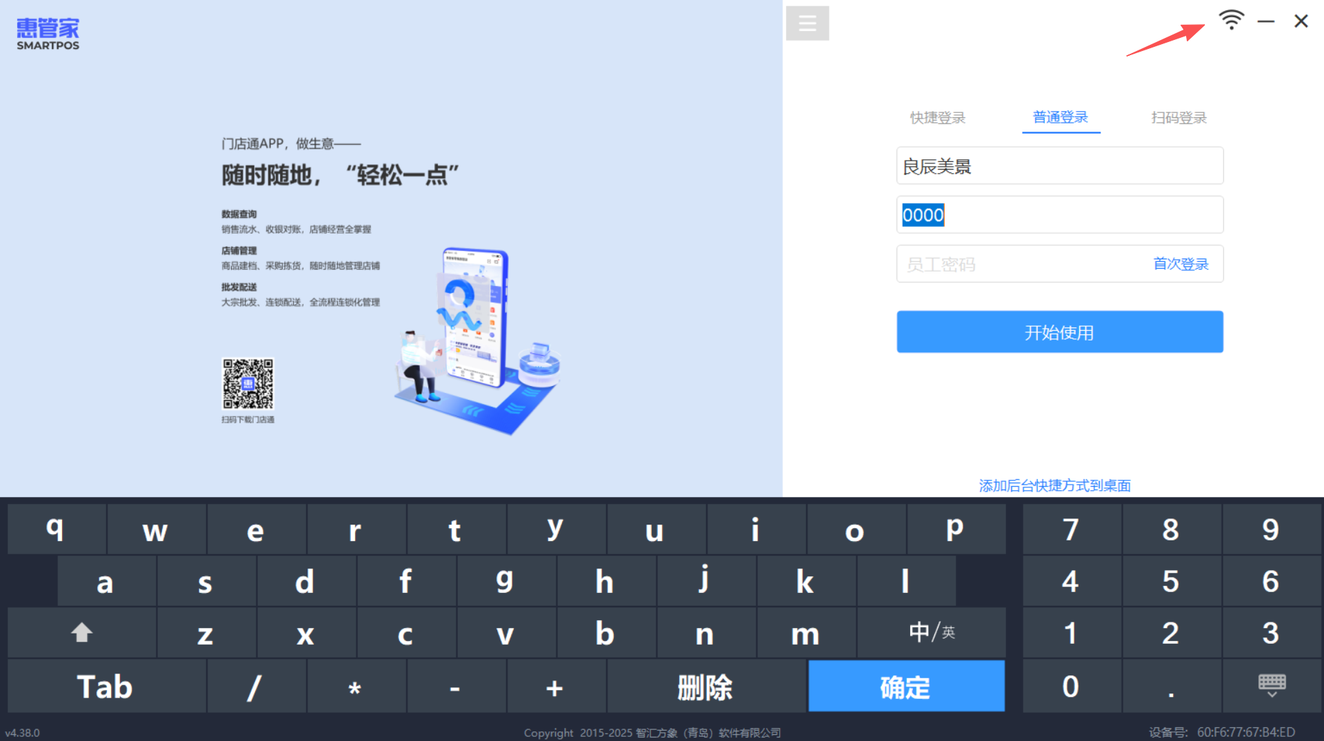 使用情景:前台登陆可直接使用门店通扫码,无需手动输入账号密码