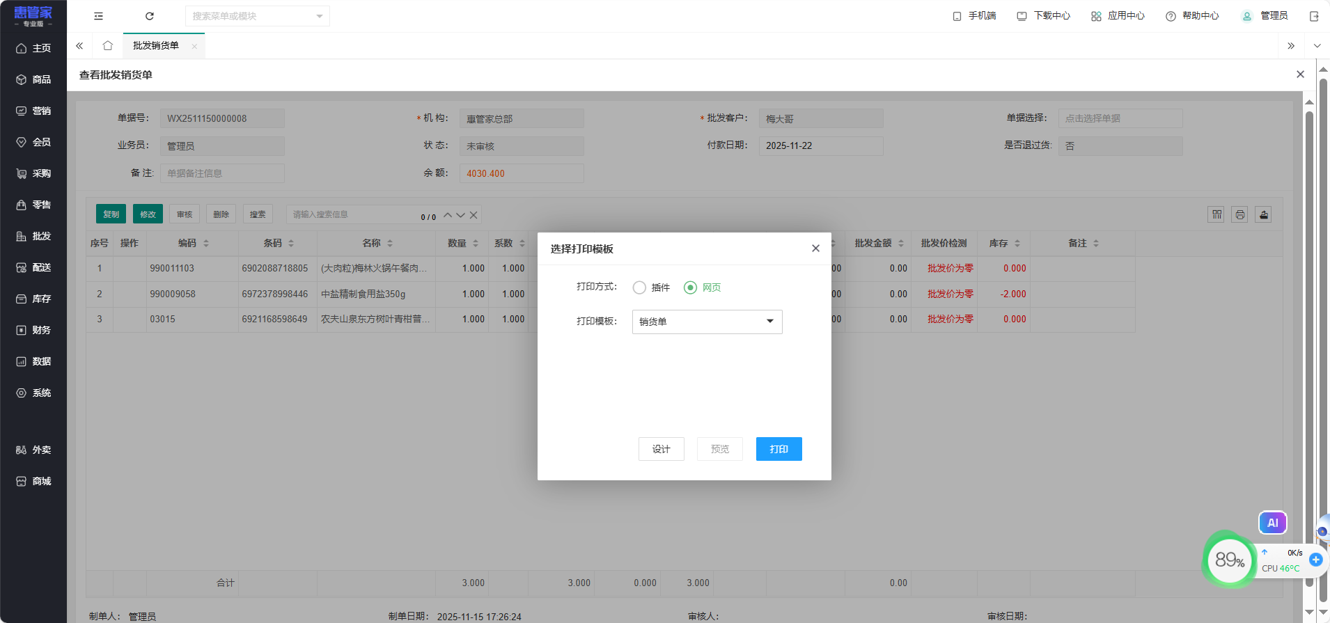 使用流程:后台 -- 任意单据 -- 右上角【打印】按钮 --【打印方式】--【插件】