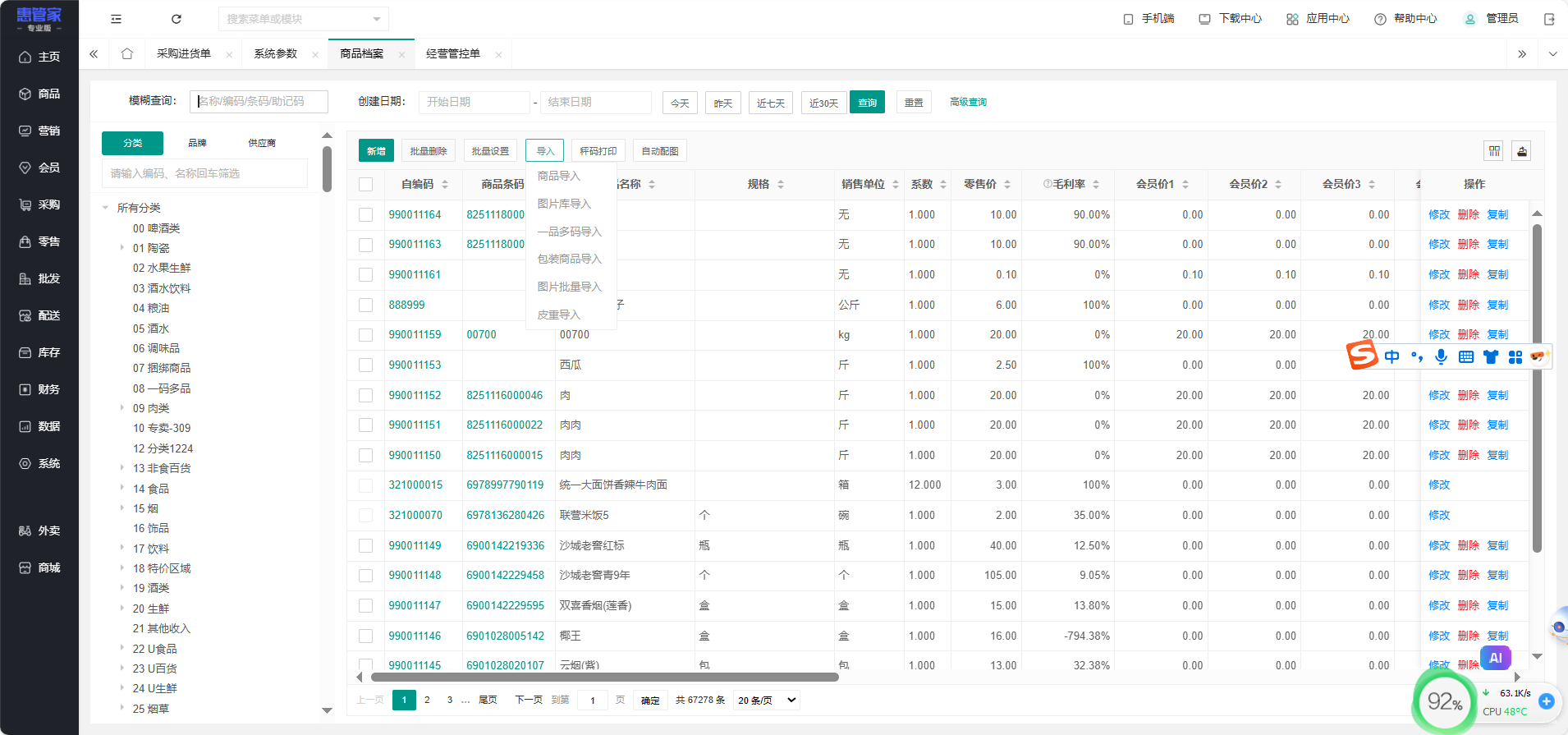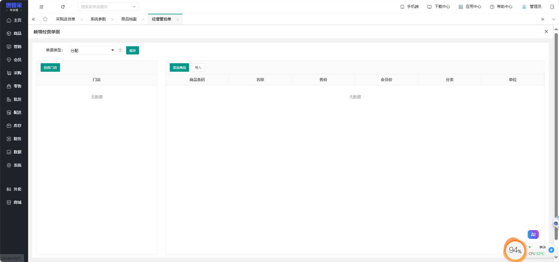 使用流程:后台 --【商品】--【经营管控单】--【导入】